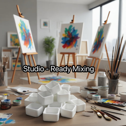 0.4ML 50Pcs/100Pcs Blue Glazed Porcelain Pans – Artisan Ceramic Mixing Dishes for Watercolor, Gouache, Ink & Handmade Colors – Reusable Mixing Cups for Custom Palettes