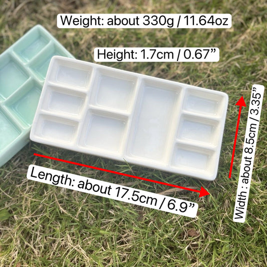 FCLUB Ceramic 9-Well Paint Palette Set – 6-4/5 × 3-1/3 Inch White Tray for Watercolor, Gouache, Acrylic, Oil & Crafts