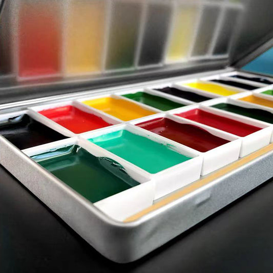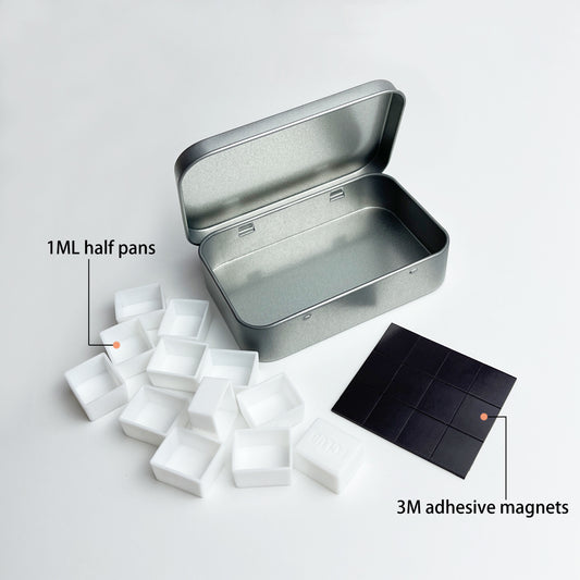 FCLUB Metal Empty Hinged Tins with 12pcs Magnetic Half Pans for DIY Travel Watercolor Painting