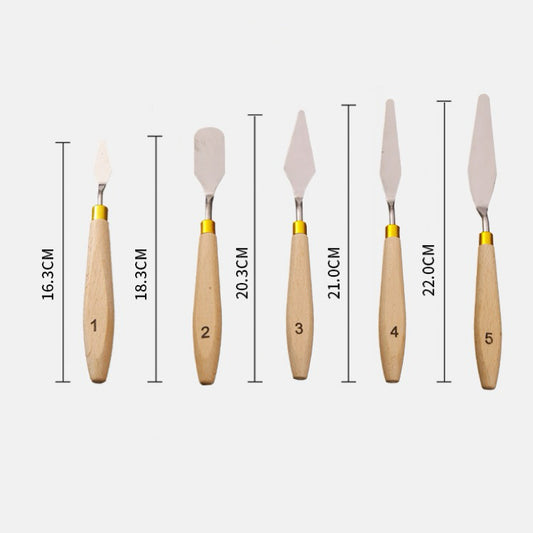 Palette Knife Set for Painting – 5PCS Stainless Steel Painting Knives with Wooden Handles, Professional Oil Paint Knives for Acrylic, Watercolor, Gouache & Texture Mixing