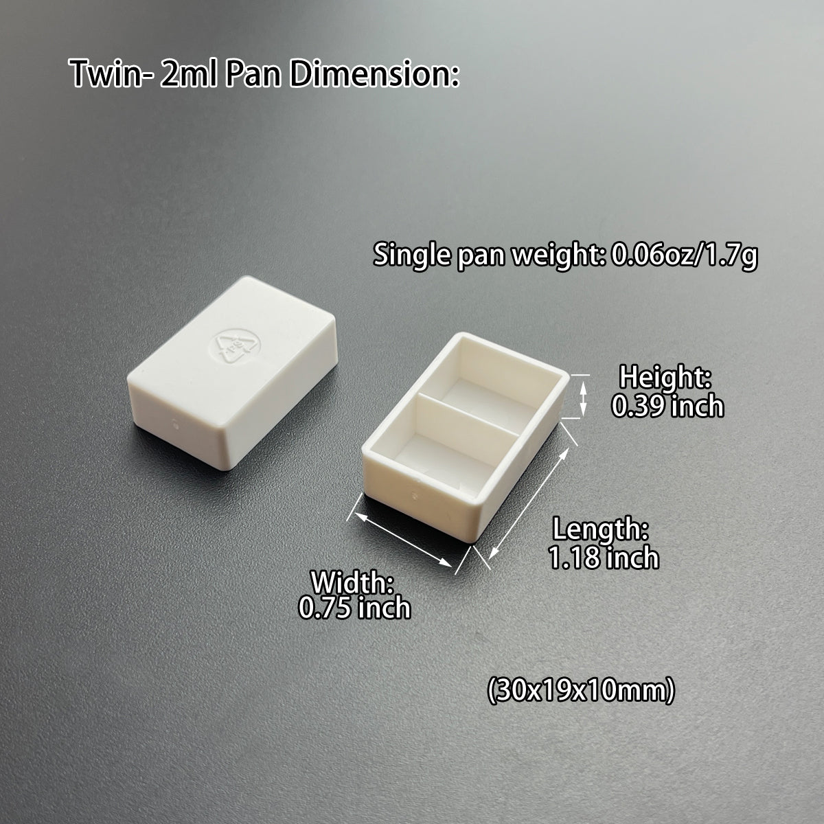 Twin connected design – Two 2ml half pans joined together (4ml total capacity)