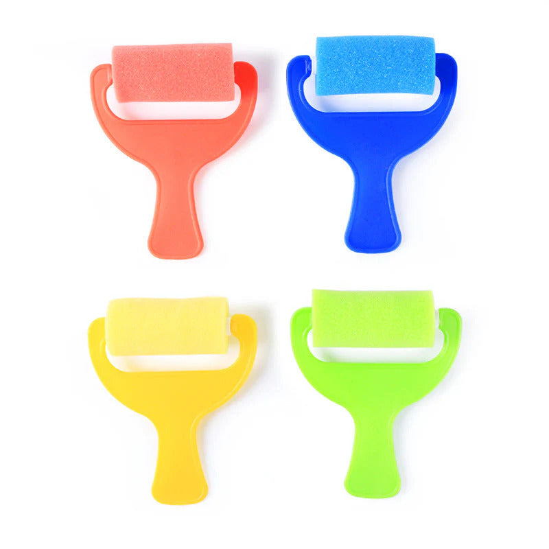 Kids DIY Sponge Paint Roller Set – 4pcs Colorful EVA Foam Painting Rollers, Easy-to-Clean Art Brushes for Toddler Doodling & Early Learning, Creative Preschool Painting Tools