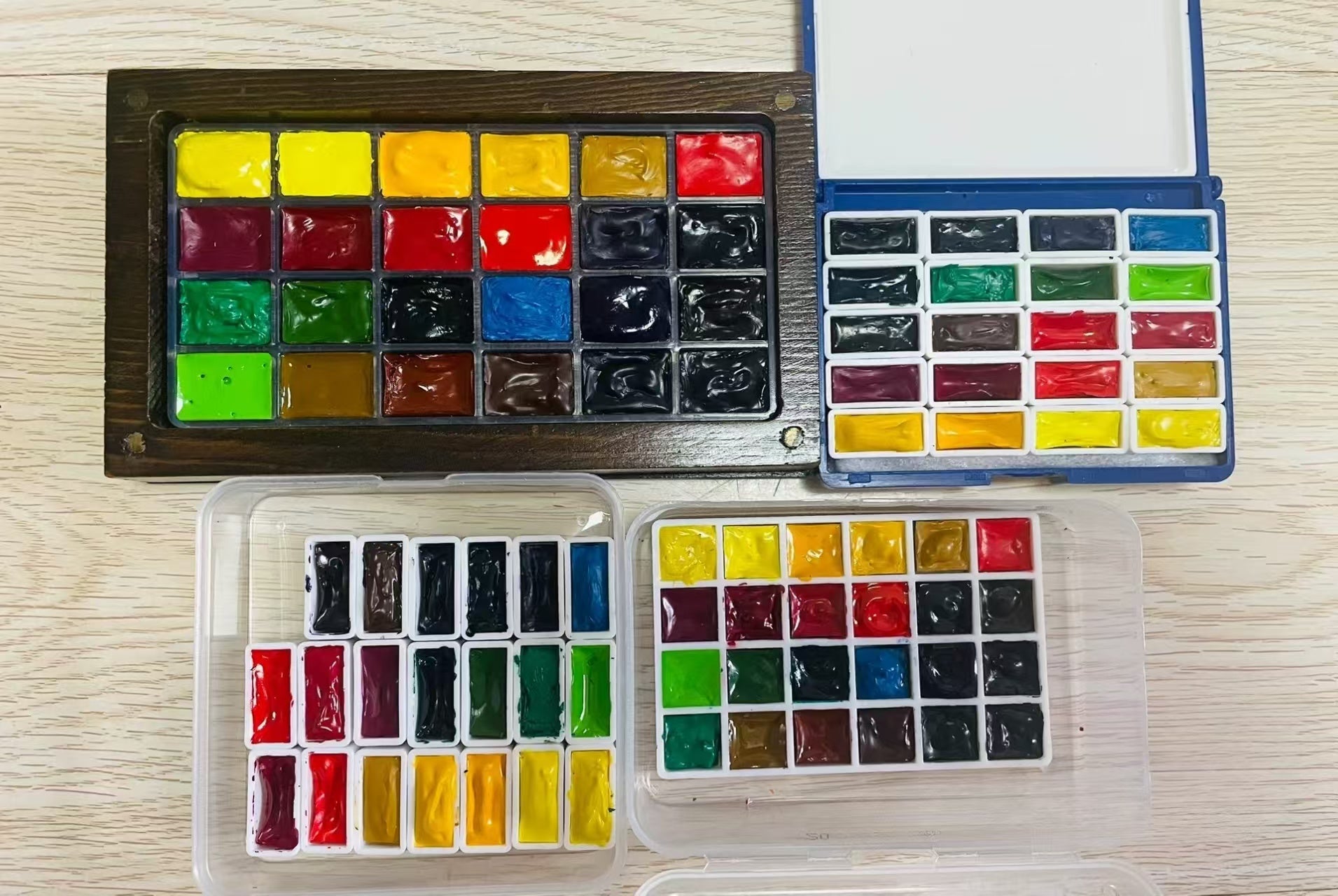 Crafted from high-quality white plastic, these pans are smooth, stackable, and ideal for showcasing handmade watercolors professionally.