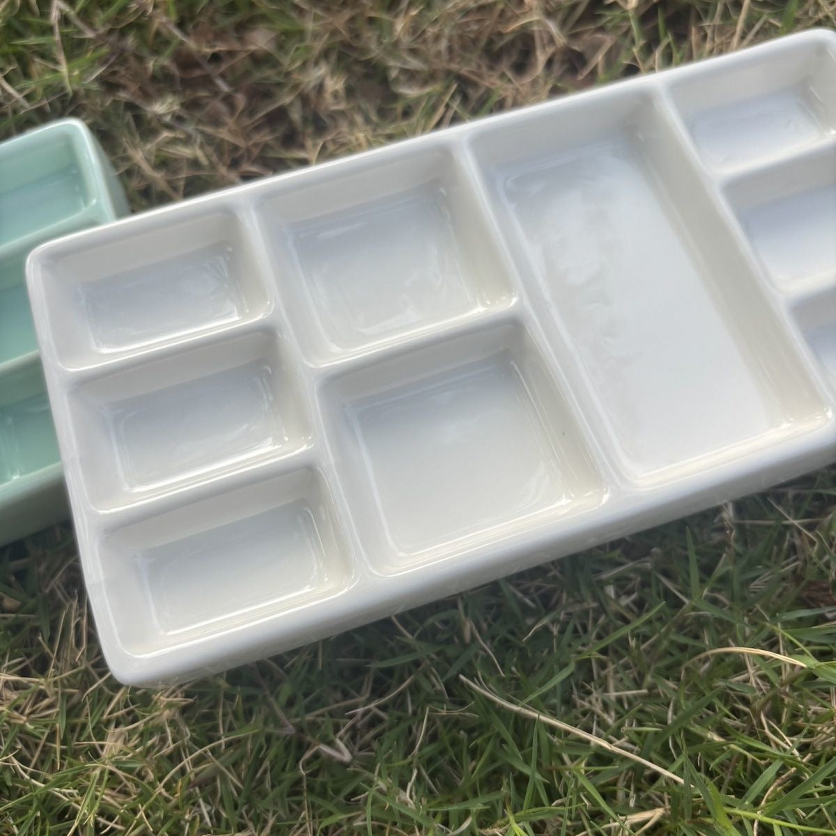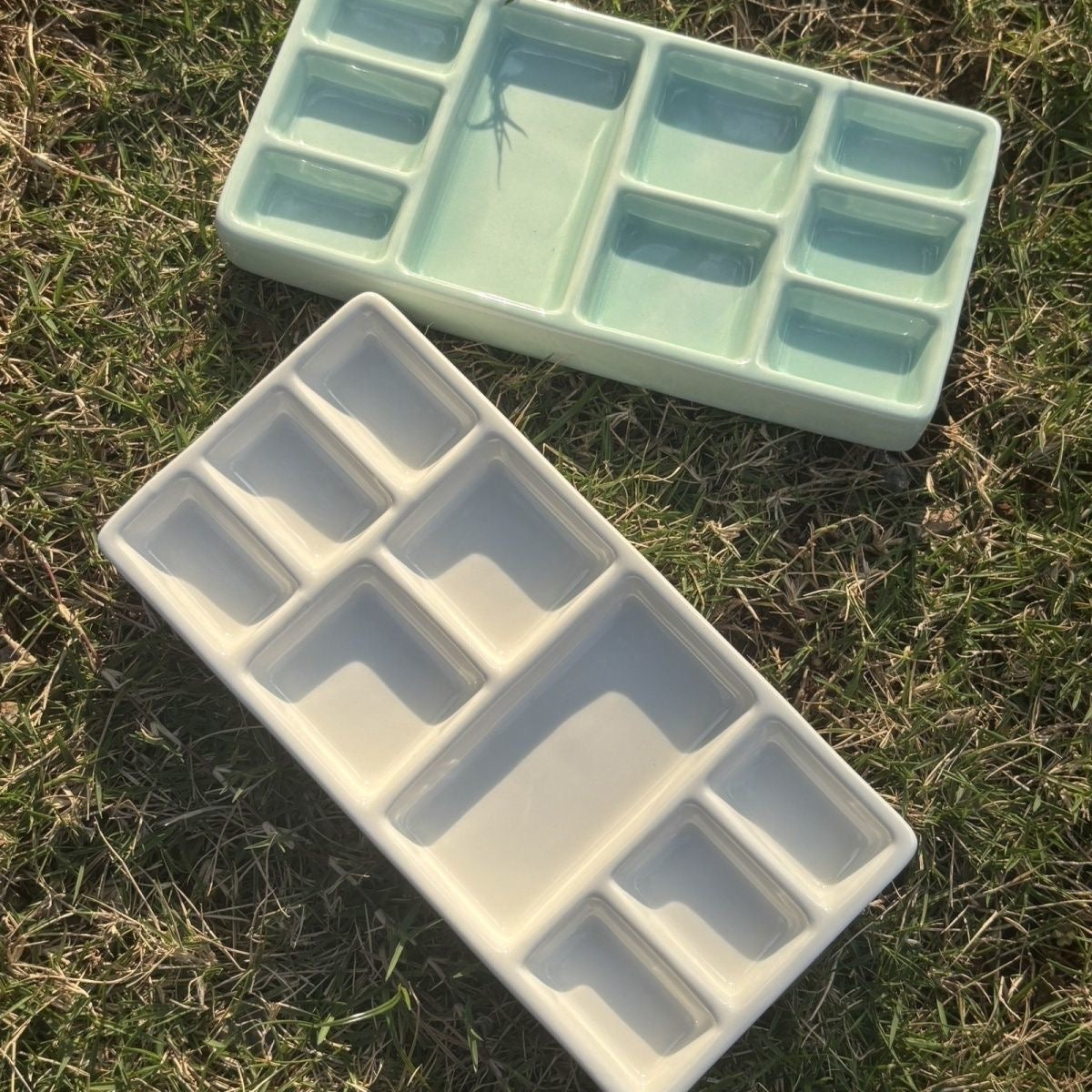 ⭐Crafted from eco-friendly white/ green ceramic, our paint palettes are built to last and resist stains.